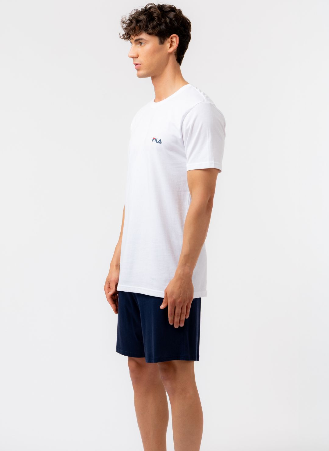Moška pižama Fila je sinonim za udobje in kakovost. Komplet vključuje majico s kratkimi rokavi in kratke hlače v beli in modri barvi, izdelane iz čistega bombaža, ki zagotavlja mehkobo in odlično zračnost.