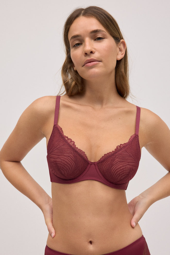 Modrček Ysabel Mora Lace Elegance združuje zapeljivost in udobje v enem kosu. Izdelan je iz mehke, prosojne čipke, ki lepo poudari naravno obliko prsi, medtem ko žična opora zagotavlja popolno prileganje in podporo.